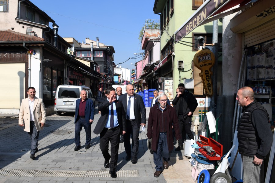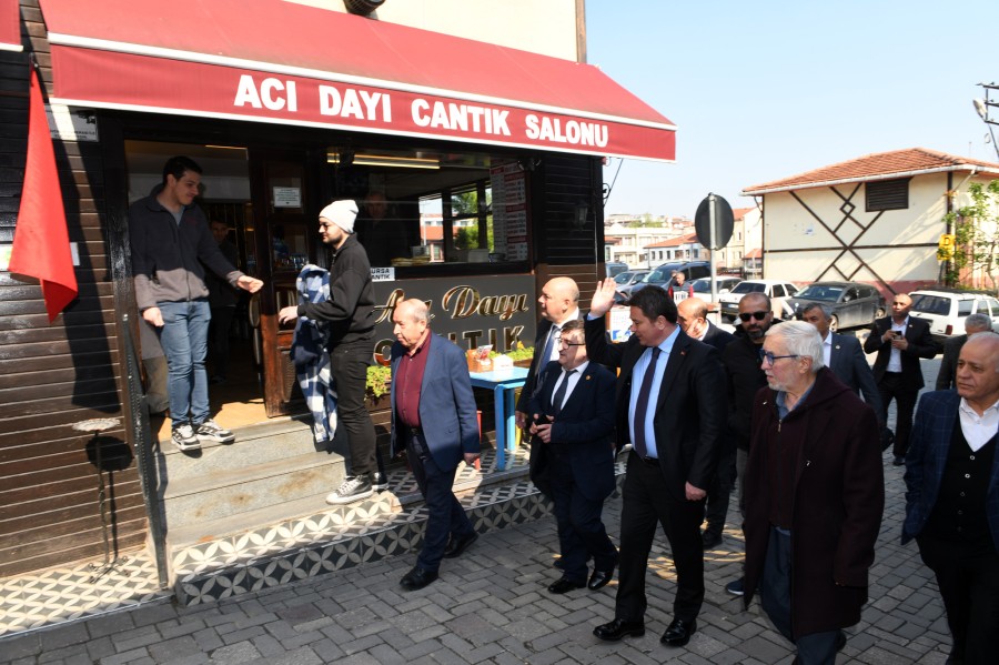 Osmangazi Belediye Başkanı Erkan Aydın'ı ağırlayan Kayıhan Çarşısı esnafı,