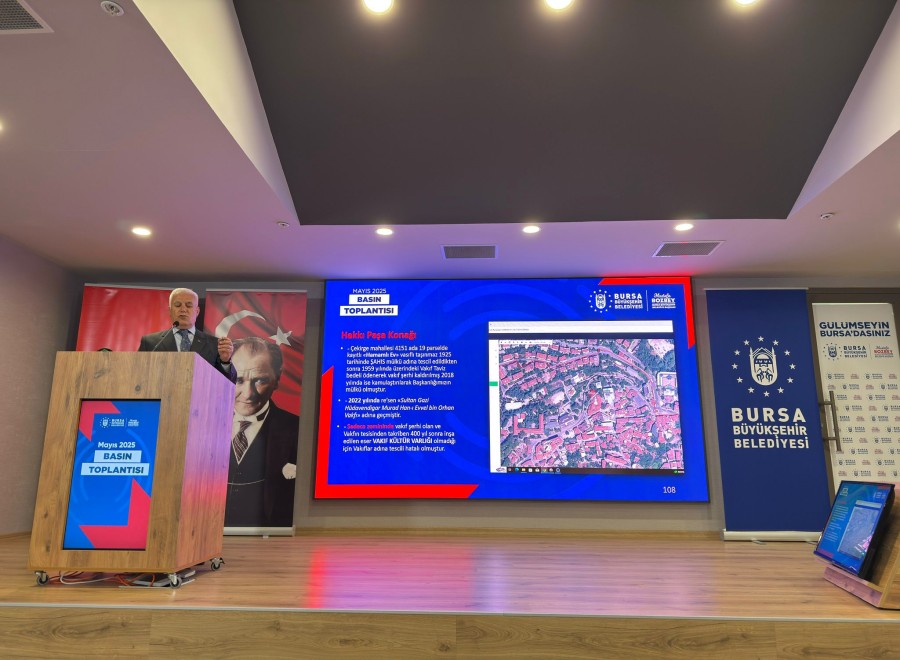 Bunlar hoş şeyler değil, onlarca binaya konmuşsunuz. Zaten bakın, sayacağım: Mahfel'e de el koydular. Yani 2014 yılında belediyeye geçmiş bir yer, belediyenin taşınmazları arasında ama sadece "vakıf kültür varlığı" diye bir ibare koymuşlar oraya, oraya da el koymuşlar. Şehir kütüphanesi orası da aynı şekilde, yıllık 120.000 TL de para ödüyoruz biz oraya. Belediye binasından 1.400.000 TL istiyorlar yıllık ve burada da yine aynı şekilde 120.000 TL var. Yani mahkeme hamamı, el konulan yerlerden bir tanesi; Hakkı Paşa Konağı, Hüsnü Züber Evi, İncirli Hamamı, Beyazıtpaşa Medresesi, Umurbey Hamamı, Mudanya Tahir Ağa Hamamı, Hünkar Köşkü civarındaki arsa, Darphane Kültür Merkezi ve birçok taşınmaz benzer gerekçelerle maalesef Bursa Büyükşehir Belediyesi'nin elinden alınmıştır. Bu yapılarda vakfa ait hiçbir tarihi eser bulunmamakta, bir kısmı tamamen belediye yatırımları ile düzenlenmiş, ihya edilmiştir. Tümüne dava açacağız. Arkadaşlarımız arıştırdı, vakıf kültürü ile alakalı hiçbir emare taşımıyor buralar. Bizim tarihi belediye binası ile ilgili bu açıklamaları asla kabul etmiyorum. Orası Bursalılar belediye binasıdır. Bu taşınmazların çoğu belediye eliyle inşa edilmiştir. Hep bazı hibe, satın alma ile belediye mülkü olmuş tesisler, bazıları takaslarla belediyeye geçmiş tesisler. Tarihi yapılar, niye Bursa Büyükşehir Belediyesi hem onları onarıyor hem tarihi kimliğini koruyor aslında bunları.