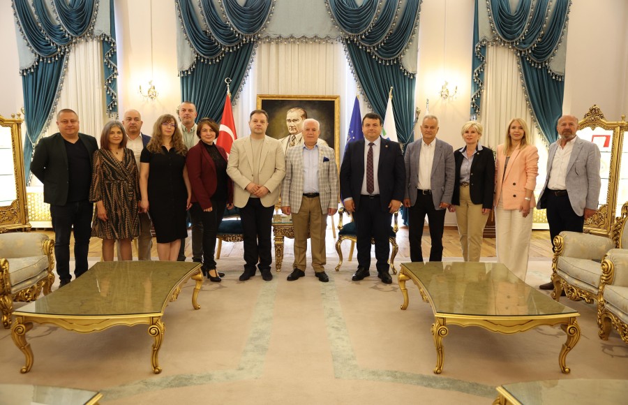 Bulgaristan'ın Tırnova Belediye Başkanı Daniel Dimitrov Panov, kardeş şehir ilişkileri kapsamında Bursa'ya gelerek Büyükşehir Belediye Başkanı Mustafa Bozbey'i Tarihi Belediye Binasında ziyaret etti.