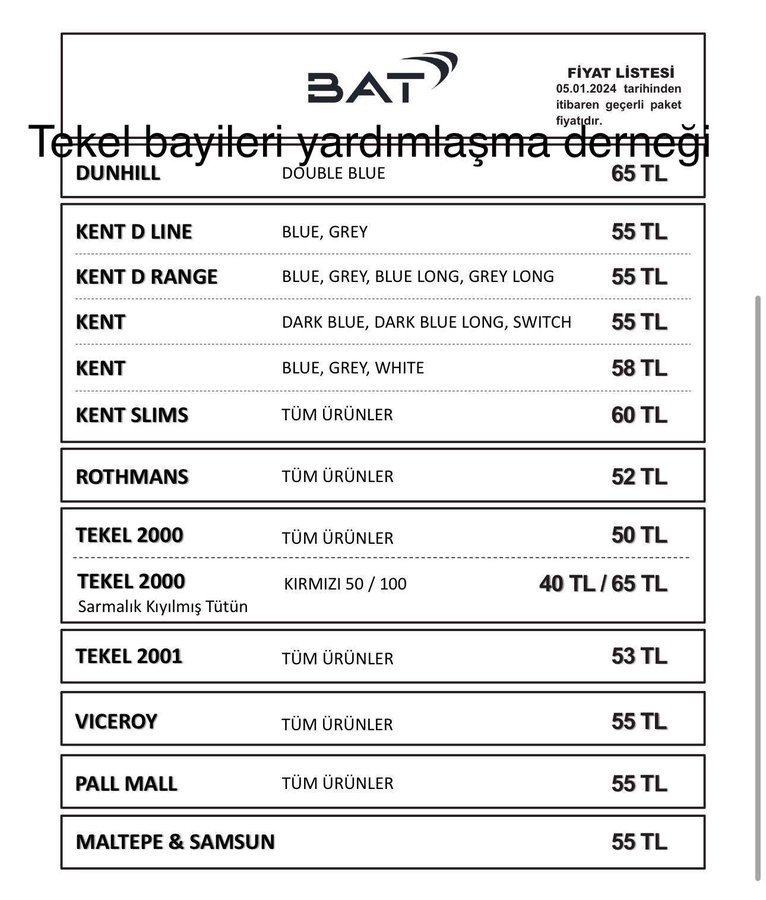 Tekel Bayileri Yardımlaşma Derneği Başkanı Erol Dündar BAT grubu sigara zammını sosyal medya hesabından duyurdu.
