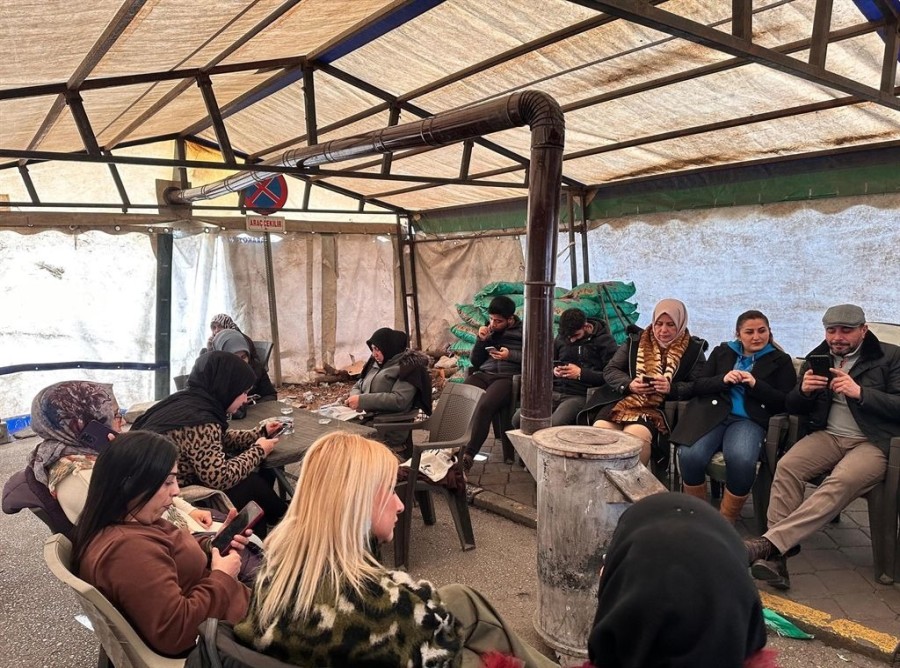 İşçiler, gece yaktıkları soba başında toplanarak ısınıyor. Soba üzerinde demledikleri çayı yudumlayan işçiler, zorlu şartlara rağmen direnişten vazgeçmeyeceklerini söyledi.