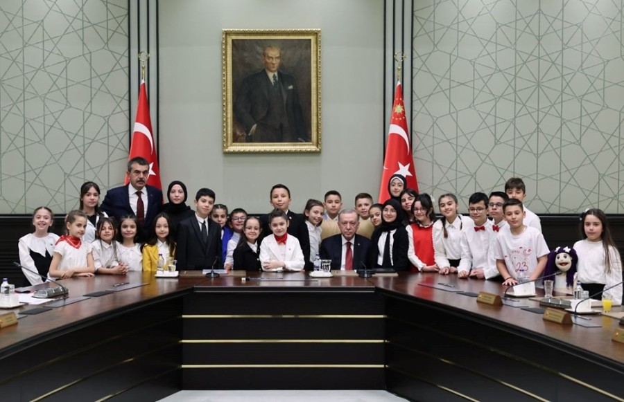 Milli Eğitim Bakanı Tekin ve beraberindeki çocuklar, daha sonra Cumhurbaşkanı Recep Tayyip Erdoğan tarafından Beştepe'de kabul edildi.