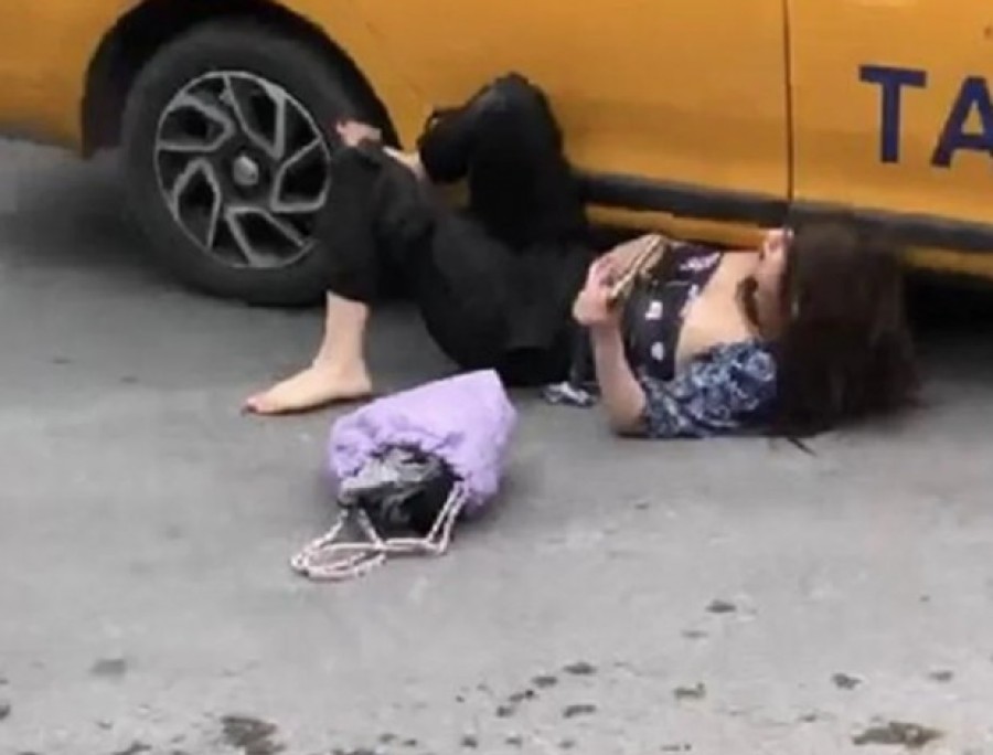 Taksiden inmek istemeyen kadın direnerek karşılık verirken, yerlerde süründü. Tehditler savuran kadın yere yatarak bir ara taksinin altına girmeye çalıştı. O anlar bir vatandaş tarafından cep telefonu kamerasıyla görüntülendi. Görüntülerde taksi şoförünün, motosiklet sürücüsünden yardım alarak kadını taksiden indirdiği, daha sonra kadının Arapça konuşarak kendini yerlere attığı görülüyor.