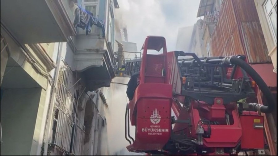 İstanbul Beyoğlu'nda bir binada yangın çıktı. Alevlerin sardığı binayı söndürmek için ekipler çalışma yapıyor. Yangın bitişikteki binalara da sıçradı.