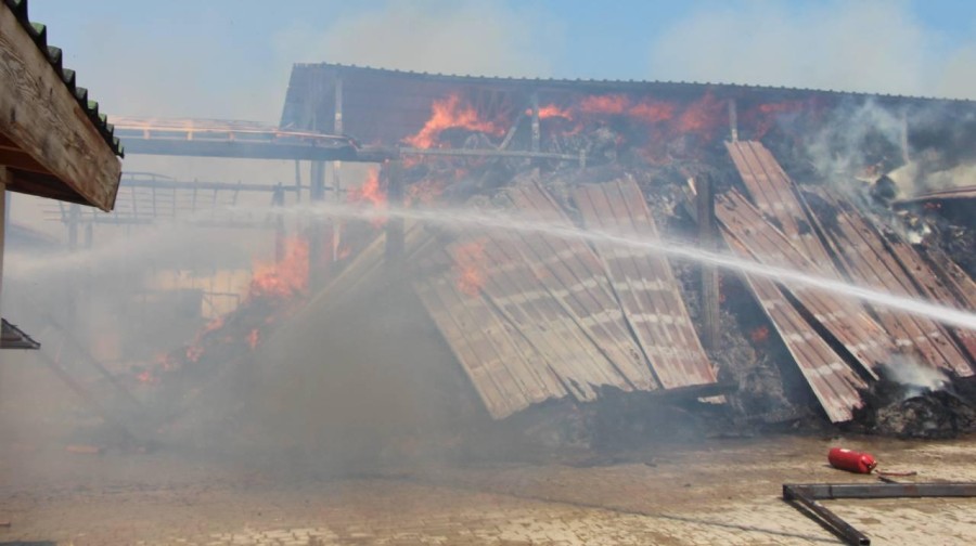 Serhat Akbaş'a ait at çiftliğinde tadilat esnasında demir kesme makinesinden çıkan kıvılcımlar saman balyalarının tutuşmasına neden oldu.