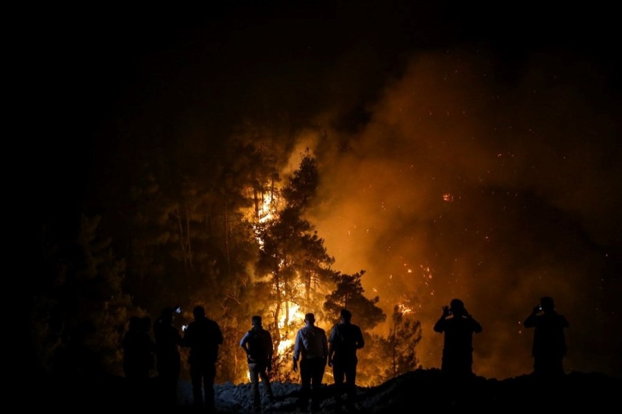 Havanın kararmasıyla sadece karadan müdahale eden ekipler, alevlerin yerleşim yerlerine ulaşmaması için ormanda iş makineleriyle yollar açarak yangını çevrelemeye çalıştı.