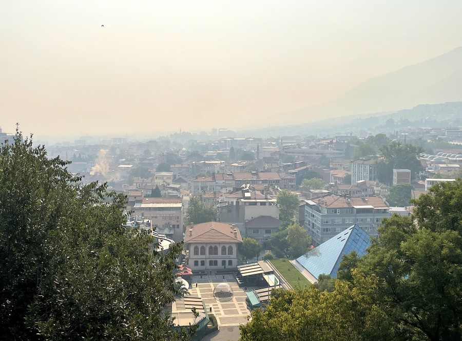 Geyve'nin Hacılar Mahallesi'ndeki ormanlık alanda 20 Temmuz'da çıkan, bir gün sonra Osmaneli sınırlarına sıçrayan ve söndürme çalışmaları devam eden yangın nedeniyle oluşan yoğun duman, Bursa kent merkezini kapladı.