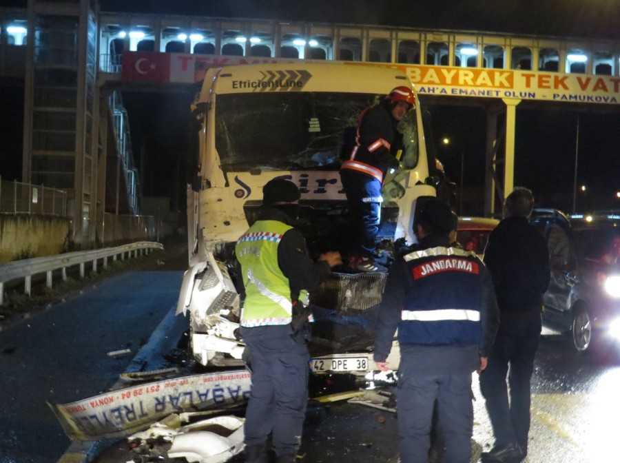 Meydana gelen kazada, Hikmet A. hafif şekilde yaralanırken durumun haber verilmesi üzerine bölgeye sağlık ve jandarma ekipleri sevk edildi. Hikmet A., sağlık ekiplerince olay yerinde tedavi edilirken kazaya karışan tırların aynı firmaya ait olduğu öğrenildi. Kazaya ilişkin inceleme başlatıldı.