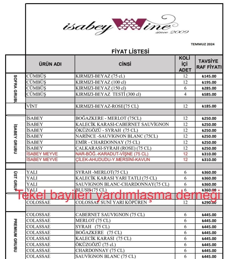Türkiye Tekel Bayileri Yardımlaşma Derneği Başkanı Erol Dündar, bir alkollü içecek grubundaki yeni fiyat listesini sosyal medya hesabından zam geldi notuyla paylaştı.