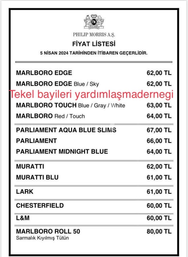 Böylelikle Philip Morris grubunun en pahalı sigarası 67 TL, en ucuzu ise 60 lira oldu.