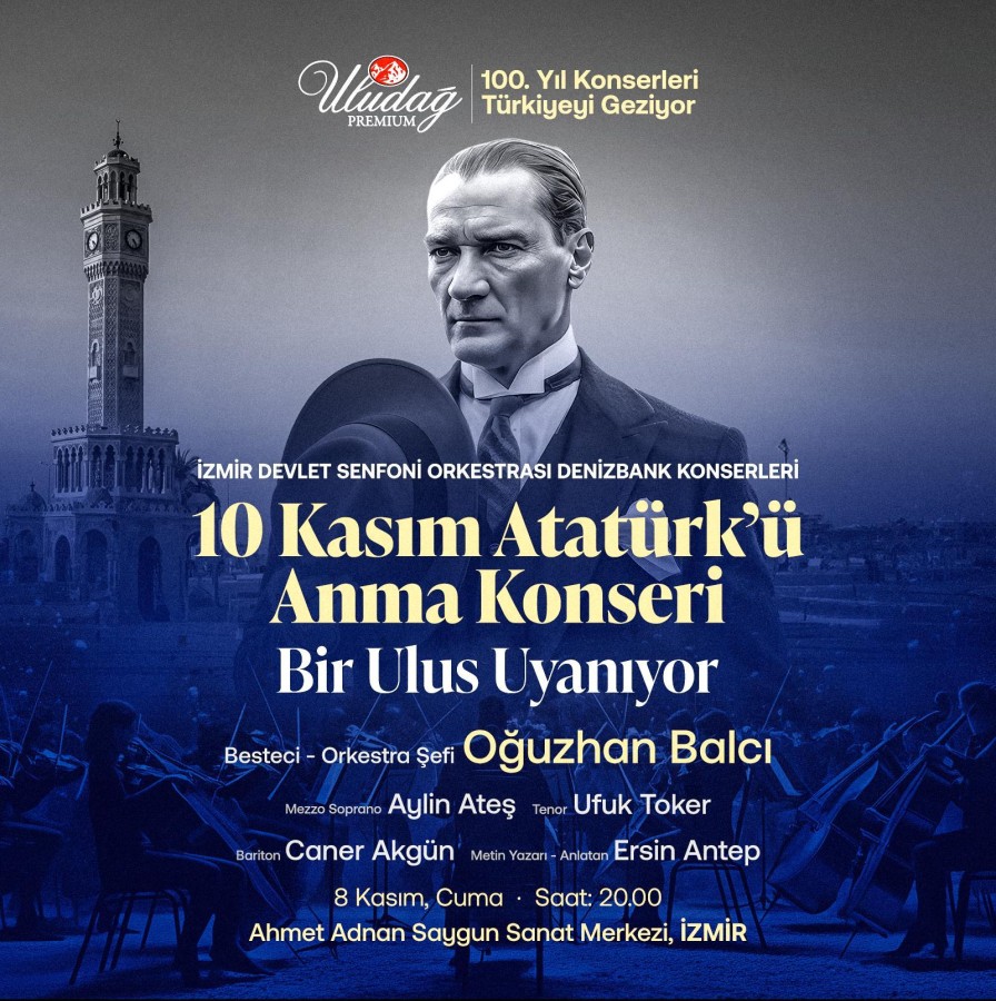 Türkiye Cumhuriyeti'nin 100. yılı onuruna, Uludağ İçecek Türk A.Ş. sponsorluğunda bestelenen "Bir Ulus Uyanıyor" adlı senfonik eser, Türkiye'nin çeşitli şehirlerinde sanatseverlerle buluşmaya devam ediyor. 8 Kasım'da Atatürk'ü Anma Konseri kapsamında İzmir'de sahnelenecek bu anlamlı eser Büyük Önder Atatürk'ün hatırasını onurlandıracak.