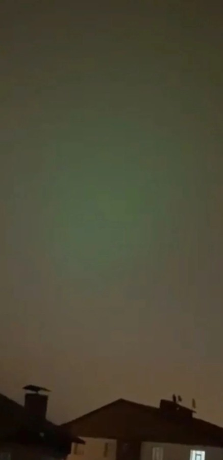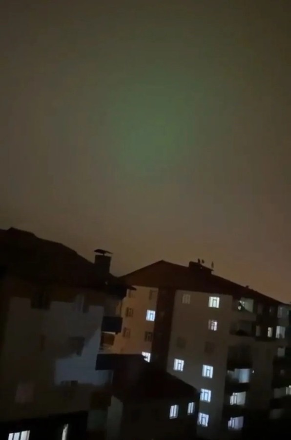 Merak uyandıran yeşil ışığı gören vatandaşlar o anları cep telefonu kamerasıyla kaydedildi.