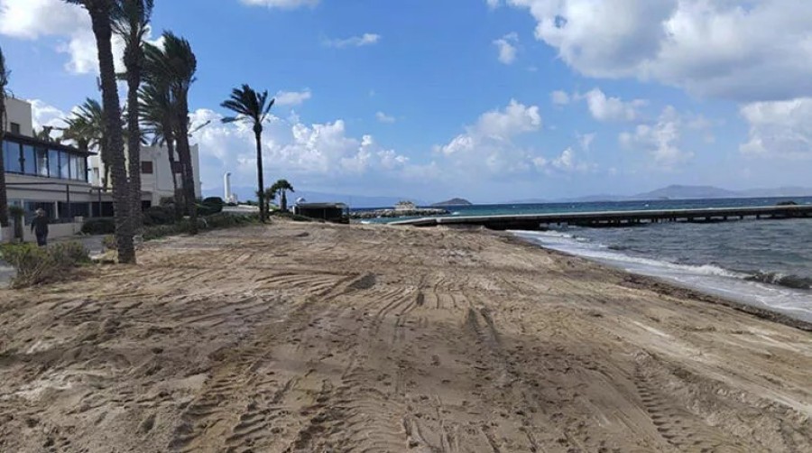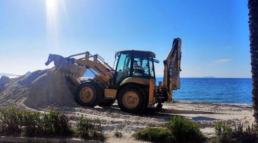Muğla'nın Bodrum ilçesinde, bir otelin önündeki sahile beyaz kum dökülmesiyle ilgili işlem yapıldı. Belediye ekipleri tarafından kum kaldırıldı. Son dönemlerde Bodrum'un doğal kumsallarının Maldivler özlemiyle beyaz kumla kaplanmaya çalışıldığını belirten Bodrum Belediye Başkanı Ahmet Aras, "Getirilen kumların niteliğinin ne olduğu belli değil. Dökülen beyaz kumların insan sağlığına zararlı olduğunu da görebiliyoruz. Kumun deniz suyuyla buluştuğunda bir balçık gibi denizin dibini sıvadığını ve ekosistemi bozduğunu görüyoruz" ifadelerini kullandı.