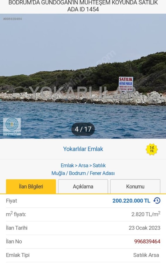 Muğla'nın Bodrum ilçesinde bulunan Küçük Tavşan Adası satılığa çıktı. 220 milyon 220 bin lira değer biçilen adanın fiyatı dudak uçuklattı.