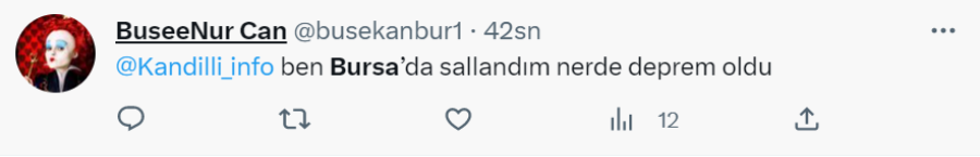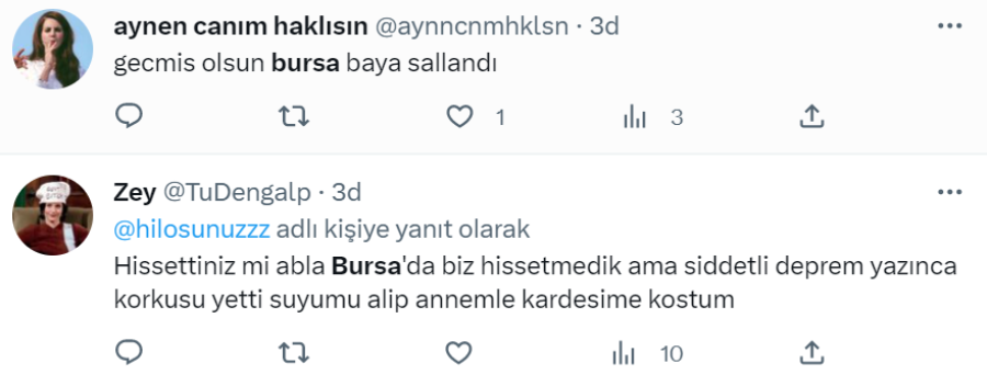 Depremi hisseden bazı Bursalıların sosyal medya paylaşımları ise şöyle,