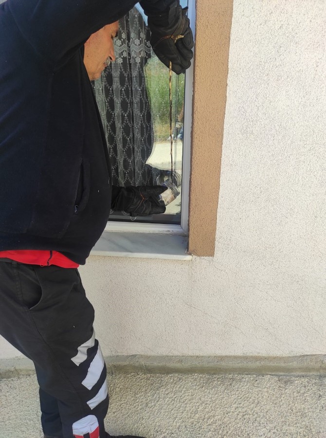 Eve gelen itfaiye ekibi örümceği özenle bulunduğu yerden alarak güvenli bir şekilde kavanoz içerisine yerleştirdi.
