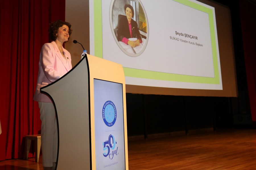 BUÜ Mete Cengiz Konferans Salonu'nda gerçekleşen etkinliğin açılışında konuşan BUİKAD Başkanı Şeyda Şençayır, '' Bugün sadece 17. dönemin sertifika töreni için değil, bir değişimin, bir inancın ve yıllara yayılan bir emeğin kutlaması için buradayız. Siz gençlerle 17 yıl önce çıktığımız bu yolculukta, o günden bugüne hiç ara vermeden, kararlılıkla yolumuza devam ettik. Çünkü biliyoruz ki bir genç kızın içindeki potansiyeli farketmesi yalnızca onun değil, toplumunda geleceğini dönüştürüyor. Biraz sonra vereceğimiz sertifikalar sadece başarıyı değil, cesaretinizi de simgeliyor. Bizler BUİKAD ailesi olarak siz genç kızlarımızın güçlenmesini bir gelecek vizyonu olarak görüyoruz. Çünkü biliyoruz ki kadınlar birbirine el verdikçe dönüşüm durdurulamaz.'' şeklinde konuştu.