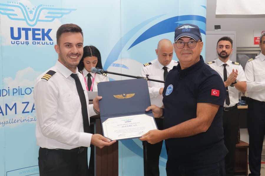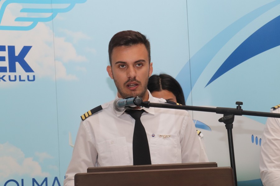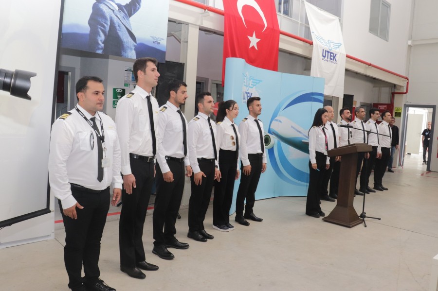İstiklal Marşı'nın okunması ve saygı duruşu ile açılan programın ilk konuşmasını yapan UTEK Eğitim Müdürü Neslihan Özgür, UTEK'in her gün gelişerek ve büyüyerek Türk sivil havacılığına katkı sağlamaya devam ettiğini belirtti. Özgür, "Hava yollarında pilot olmak hedefiyle UTEK Uçuş Okulu'muzda yoğun ve yorucu bir eğitim sürecini başarıyla tamamlamanın haklı gururunu yaşıyoruz. Uçuş emniyeti ve kaliteden ödün vermeden Türk sivil havacılığına katkı sağlamaya devam ediyoruz" diye konuştu.