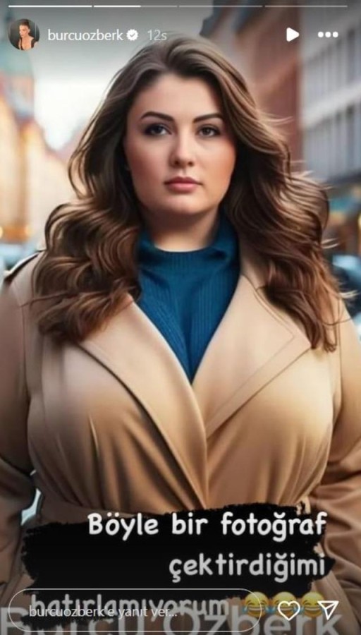 Ünlü oyuncu Burcu Özberk son dönemde ekranlardan uzak proje değerlendiriyor. Özberk son günlerde sosyal medyada gündem olan yapay zeka ile kilo aldırılma trendine dahil oldu. Kendisini kilolu gören oyuncu bakın ne dedi.