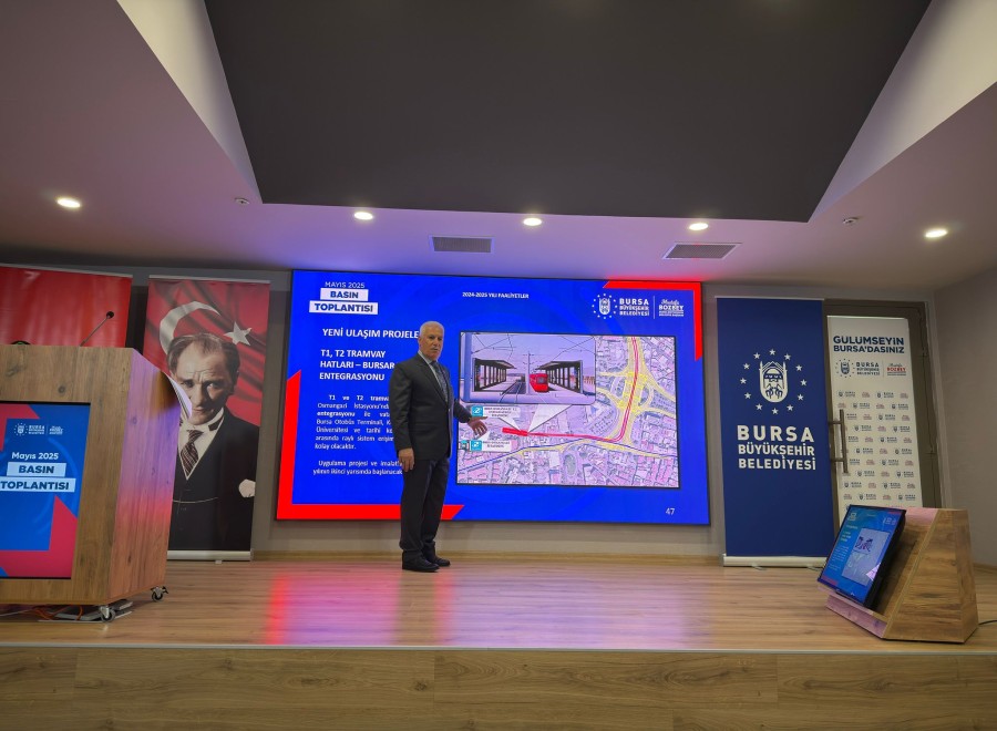 Diğer taraftan, T5 tramvayı için verdiğimiz bir hat planlıyoruz; o da önemli. Yaklaşık 10 km uzunluğunda, 9 istasyondan oluşacak bir hat. Paşa Çiftliği, Mimar Sinan ve Bursa Teknik Üniversitesi istasyonları Bursa'ya entegre olacak. Hatta bir düşünce var; oradan bir hastaneyi de oraya katabilir miyiz diye bir proje var. Ama o geçişin teknik olarak mümkün olup olmadığı sonradan belli olacak. Biz bunları Bursaray'la kesişme noktasında birleştirmek istiyoruz. Aksi takdirde yolcuyu bir yerden bir yere aktaramayız. Diyelim ki, Demirtaş'tan bindi FSM'de indi; istasyondan Bursa'ya binecek, kent merkezine çıkacak. Bunun gibi alternatif çözümleri oluşturmaya çalışıyoruz. Bu konuda yaklaşık 420.000 kişi yine tramvay hattını kullanmak durumunda olacaktır. Özellikle kent merkezinde T1 ve T2 hatlarının Bursaray ile entegre olmadığını hep eleştirdik. Şimdi onun çalışmasına başlıyoruz. Şimdi T1 hattını, T2 hattını Bursaray ile bütünleştireceğiz.