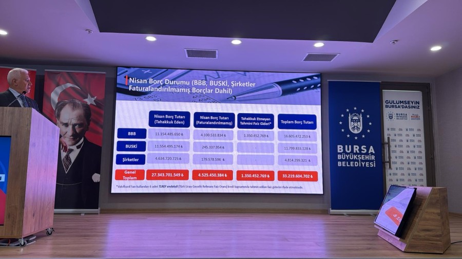 Yeni bankada 1.3 milyar civarında bir borcumuz olduğunu tespit ettik. Bir sene sonra oldu bu, çok ilginçtir. Yani bu faiz borcu görülmemiş, gösterilmemiş ama bankada faiz borcu var; kağıtta yok, bankada görünüyor. En son banka ödeme zamanı gelince karşımıza çıktı geçmişe yönelik bir faiz borcu 1.3 milyar. Ben diyordum ya, yaklaşık ortalama 1 milyar dolar civarında, birçok kişi karşı çıkmıştı. Nisana geldiğimizde 33.2 milyar borç olduğu görülüyor.