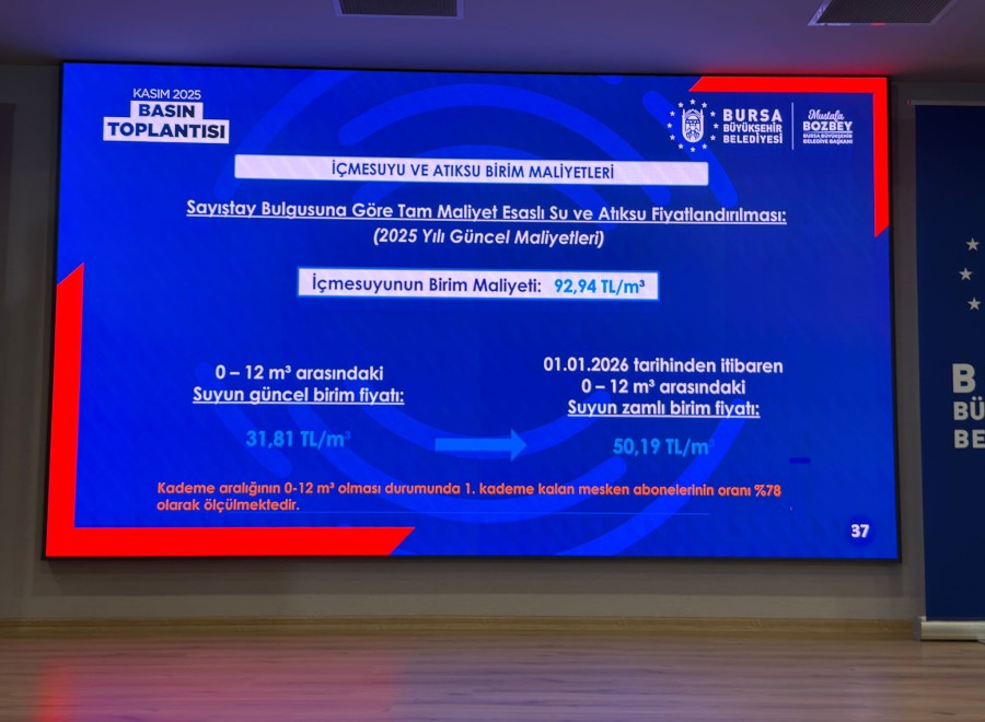 "Mutlaka düzenleme yapmamız gerekiyordu. Birçok maliyet artmış durumda, ortalama maliyetlere baktığımız zaman daha yukarıda görünüyor. İkincisi: Özellikle bizim 0-12'ye baktığımız zaman, metreküpe baktığımız zaman maliyetlerimiz de yaklaşık 40 TL'nin üzerinde; bir destek oluyoruz biz. Her metreküp için 93 TL'ye mal ediyoruz; 50 TL'ye alacağız. Belki 95'e mal edeceğiz ama 50 TL alacağız, 45 lirasını biz karşılamış olacağız.