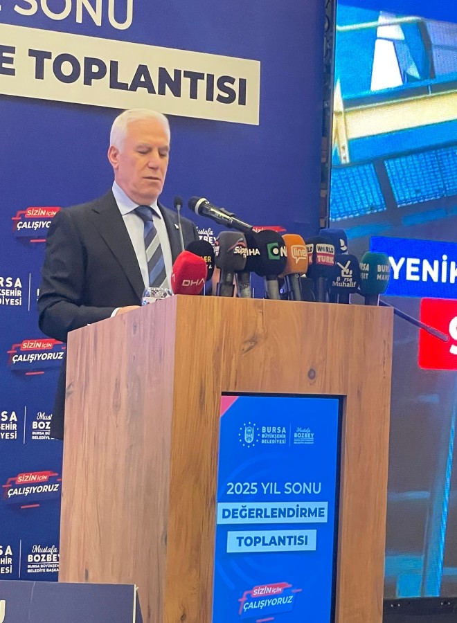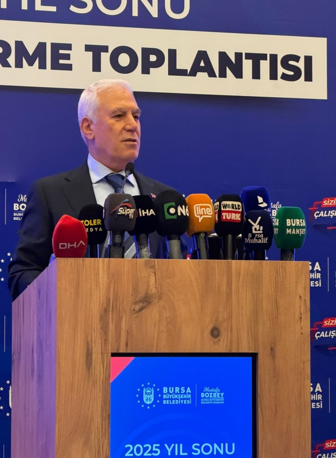Bursa Büyükşehir Belediye Başkanı Mustafa Bozbey, gerçekleştirilen "2025 Yıl Sonu Değerlendirme Toplantısı"nda belediyenin 2025 yılı faaliyetlerini paylaştı.