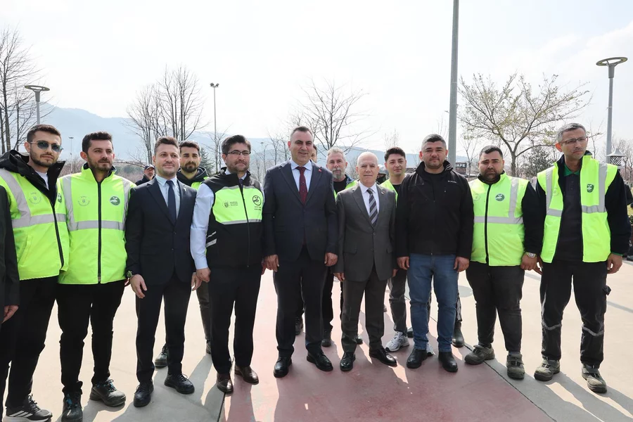 Bursa Büyükşehir Belediye Başkanı Mustafa Bozbey, ilk olarak Hüdavendigar Kent Parkı'nda Tarım Peyzaj AŞ çalışanlarıyla buluştu.