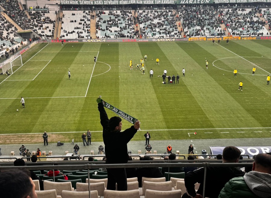0-0 biten maçı 90 dakika boyunca büyük heyecanla takip eden gençler, büyük bir coşkuyla tezahürat yaparak Bursaspor'a maç boyunca destek oldu.