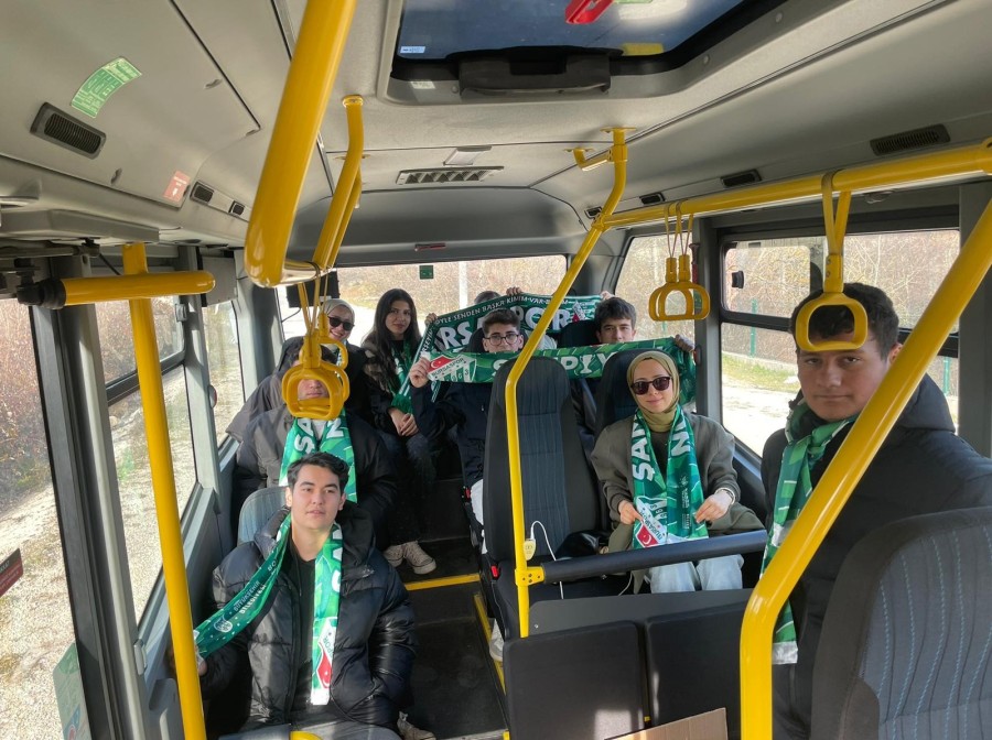 Büyükşehir Belediyesi'nin sağladığı ulaşım ve yemek desteğiyle maça giden gençler, yeşil-beyaz renklere duydukları sevgiyi stadyuma taşıdı.