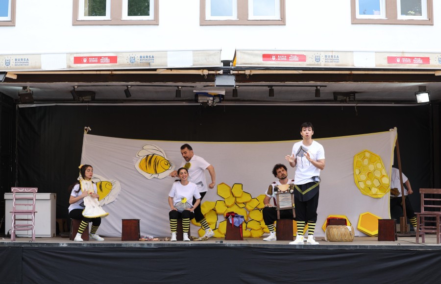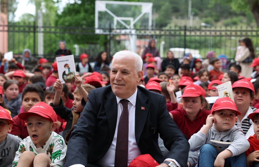 Daha sonra Büyükşehir Belediyesi Şehir Tiyatrosu Oyuncuları'nın sahnelediği "Pırtlatan Bal" adlı çocuk oyununu, Harmancık Şehit Adil Kınık İlkokulu'nda öğrencilerle birlikte izleyen Başkan Bozbey, çocukların neşesine ortak oldu.