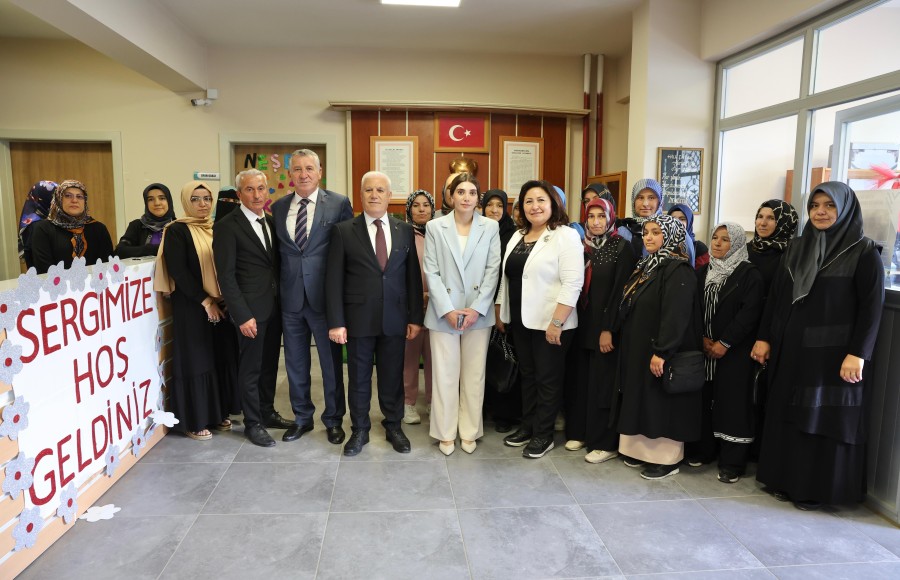 Harmancık Halk Eğitimi Merkezi'nde Giyim Üretim Teknolojisi ile El Sanatları Teknolojisi alanlarında eğitim alan kursiyerlerin hazırladığı yıl sonu sergisinin açılış törenine de katılan Başkan Bozbey, birbirinden değerli ve özgün el işi ürünlerini yakından inceledi. Kursiyerlerle sohbet eden Başkan Bozbey, serginin hazırlanmasında emeği geçenleri tebrik etti.