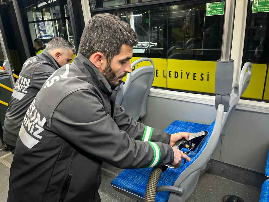 Otobüs koltuklarını profesyonel ve ileri teknolojik ekipmanlarla tek tek yıkayan BURULAŞ ekipleri, araç içi zeminleri, cam yüzeyleri ve sık temas edilen alanları detaylı bir şekilde dezenfekte etti. Titiz çalışmalar sayesinde otobüsler, hijyen ve konfor açısından en üst standartlara ulaştırılarak Ramazan Bayramı için hazır hale getirildi.