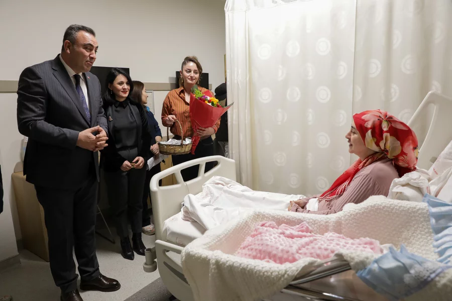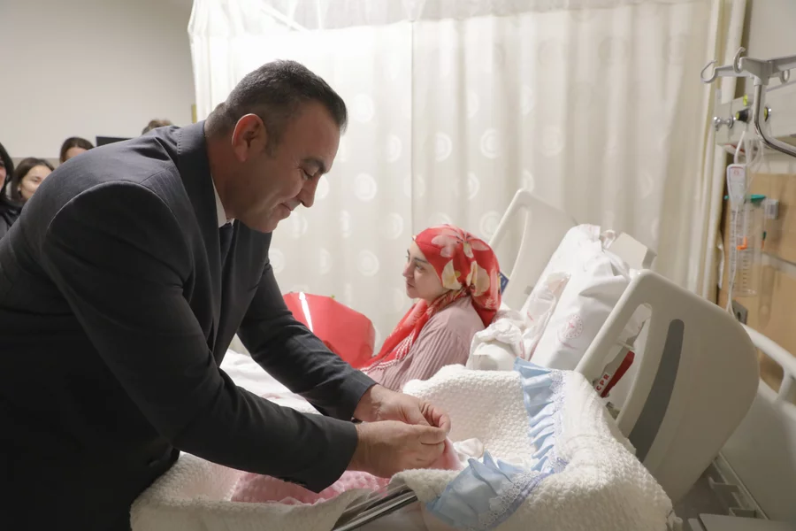 Büyükşehir Belediyesi Başkanvekili Saldız, daha sonra 2026'nın ilk bebeğini de ziyaret etti. Ebru ve Gökhan Çiçek çifti, Damla ismini verdikleri bebeklerinin sevincini Başkanvekili Saldız ve beraberindekilerle birlikte yaşadı. Çiçek çiftine de çiçek ve bebek seti takdim edilirken, Başkanvekili Saldız minik bebeğe altın taktı.