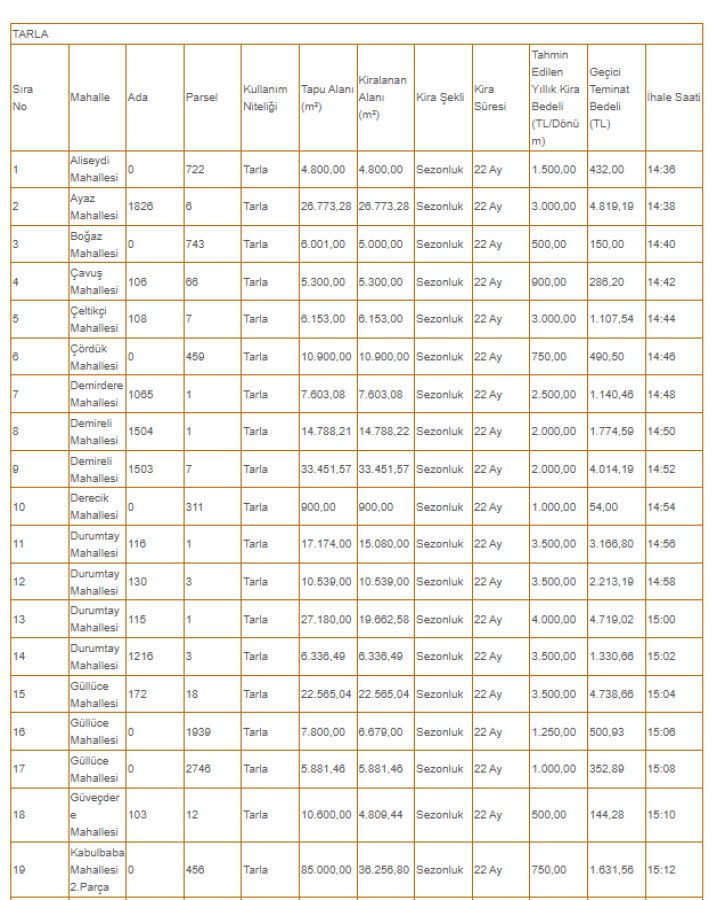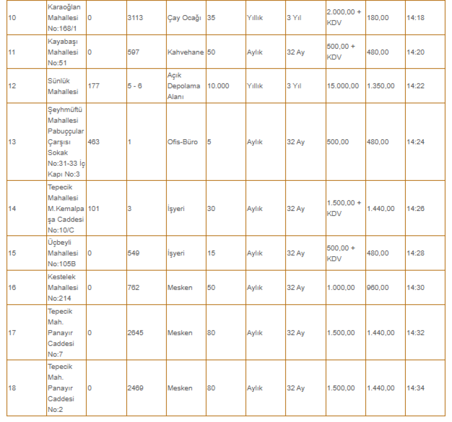 Kiralama süreleri 2 ila 3 yıl arasında değişirken, geçici teminat bedelleri muhammen bedelin yüzde 3'ü olarak belirlendi.