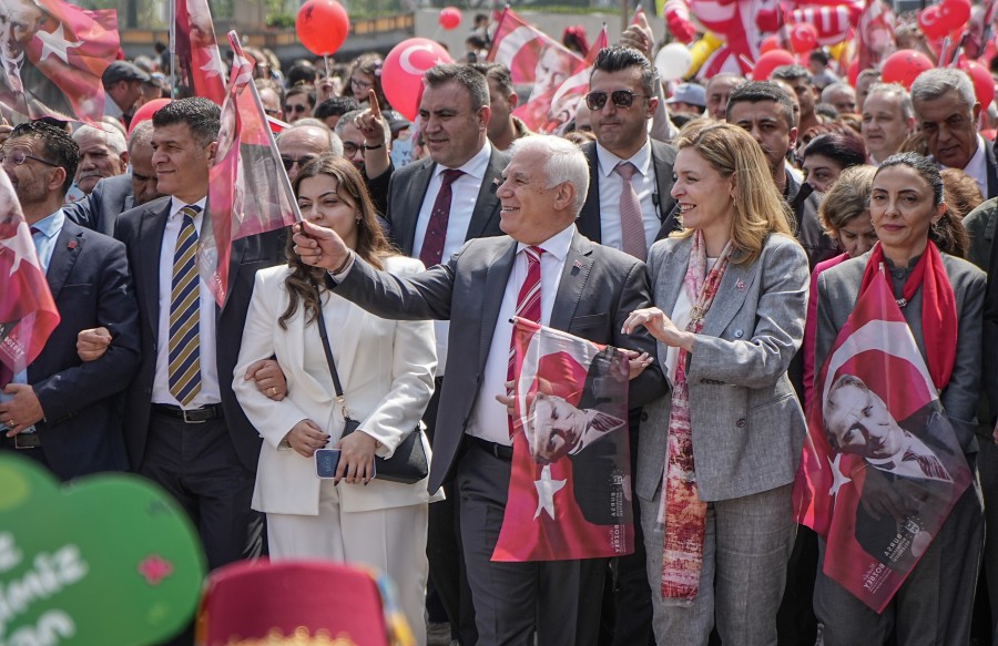 Ellerindeki Türk bayraklarıyla marşlar söyleyerek ve şiirler okuyarak yürüyen çocuklara, Büyükşehir Belediye Başkanı Mustafa Bozbey ve eşi Seden Bozbey ve CHP İl Başkanı Nihat Yeşiltaş da eşlik etti.