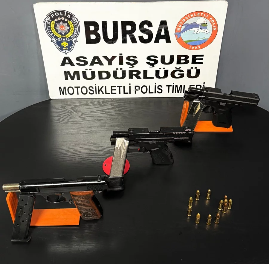 Araçta yapılan aramda, 3 ruhsatsız tabanca, 3 şarjör ve 12 fişek ele geçirildi.