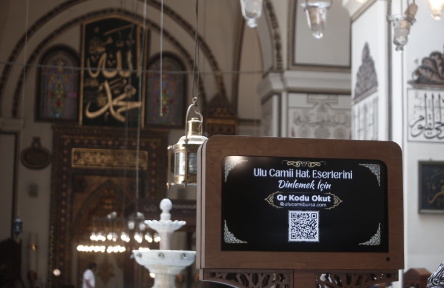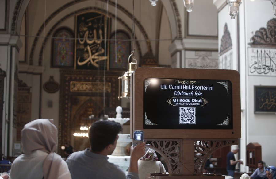 Bursa'nın simgelerinden Ulu Cami'de yer alan hat eserleri dijital ortama aktarıldı. Tarihi camiye gelen turistler kare kodları tarayarak hatların yazarlarını, Arapça okunuşu ve Türkçe mealini dinleyebiliyor.