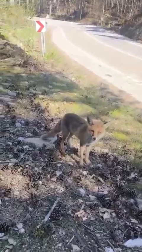Bölgede görülen bir başka tilkinin ise insanlarla sık karşılaşması nedeniyle bu duruma alıştığı, yol kenarında adeta yiyecek beklediği gözlendi. Özellikle kırsal mahallelerde zaman zaman benzer manzaraların yaşandığını belirten vatandaşlar, tilkilerin insan varlığına giderek daha fazla alıştığını ifade etti.