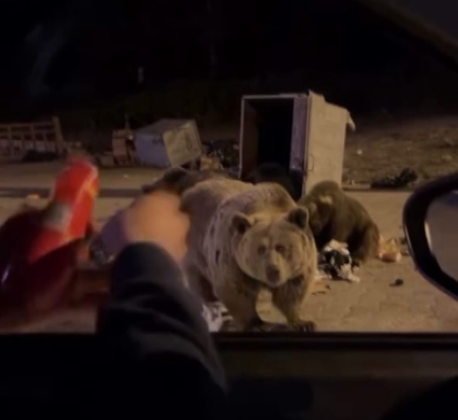 Bursa'da kış uykusuna yatmayan ayılar, Uludağ'da yerleşim yerlerine inerek çöp konteynerlerini karıştırırken görüntülendi. Milli Park yetkilileri de hayvanlara her gün yiyecek bırakıp karınlarını doyuruyor. Ancak bazı vatandaşlar ayı ailesinin yanına gelip yiyecek verirken tehlikeli anlar yaşıyor. Sucuk ziyafeti çektiği anne ayının gazabına uğrayan bir maceracı o anları kayda aldı. Ayının arabaya saldırdığı anlar yürekleri ağıza getirdi.