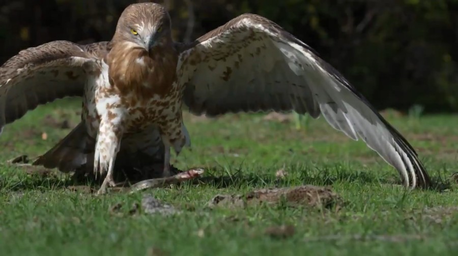 Su yılanını yakalayan kartal, ilk önce onu etkisiz hale getirdi. Daha sonra kaçmaya çalışsa da pençeleriyle hareket etmesini engelledi. Doğa gereğini yerine getiren kartal, uçarak gözden uzaklaştı.