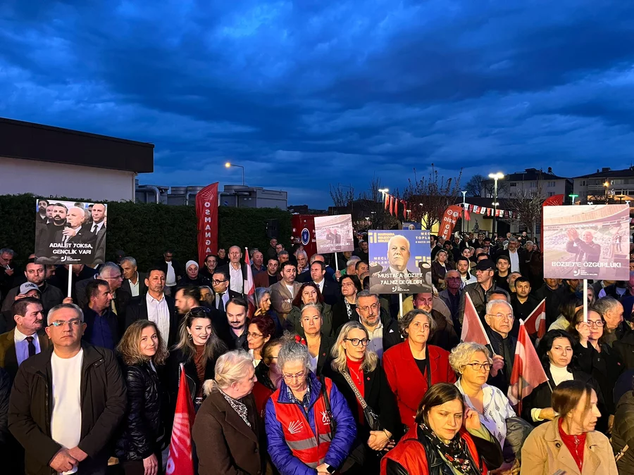 Bugünler geçecek, ama mücadele ile geçecek. Biz yarın, çocuklarımıza mücadelenin içinde olduğumuzu anlatmamız gerek. Şartlarımız, Mustafa Kemal Atatürk'ün şartlarından kötü değil. Kimse enseyi karartmasın; bu belediyeyi bundan sonra o iktidara teslim etmeyeceğiz. Bu belediyenin başkanı Mustafa Bozbey'dir."
