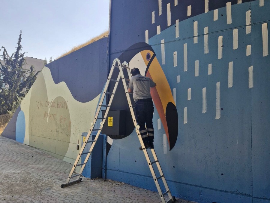 Bursa'nın yeniden yeşille anılan, estetik bir kent olması amacıyla yoğun çaba harcayan Büyükşehir Belediyesi, cadde ve sokaklardaki görüntü kirliliğinin önüne geçmek için Kent Estetiği Şube Müdürlüğü bünyesindeki sanatçılarla her geçen gün farklı uygulamalara imza atıyor. Trafo binaları, istinat duvarları ve köprülü kavşakları tuval gibi kullanan Büyükşehir Belediyesi ekipleri, cadde ve sokakları sanatla buluşturuyor. Dayanıklı özel boyalar kullanan ekipler, Kültürpark'ın kuzey duvarları ile Demirtaşpaşa Kavşağı'nın ardından Azerbaycan Parkı, Balat Otoyol Köprülü Kavşağı, Soğanlı Mahallesi Nilüfer Caddesi ve Yahşibey Mahallesi'nde çeşitli alanları da özenle renklendirdi