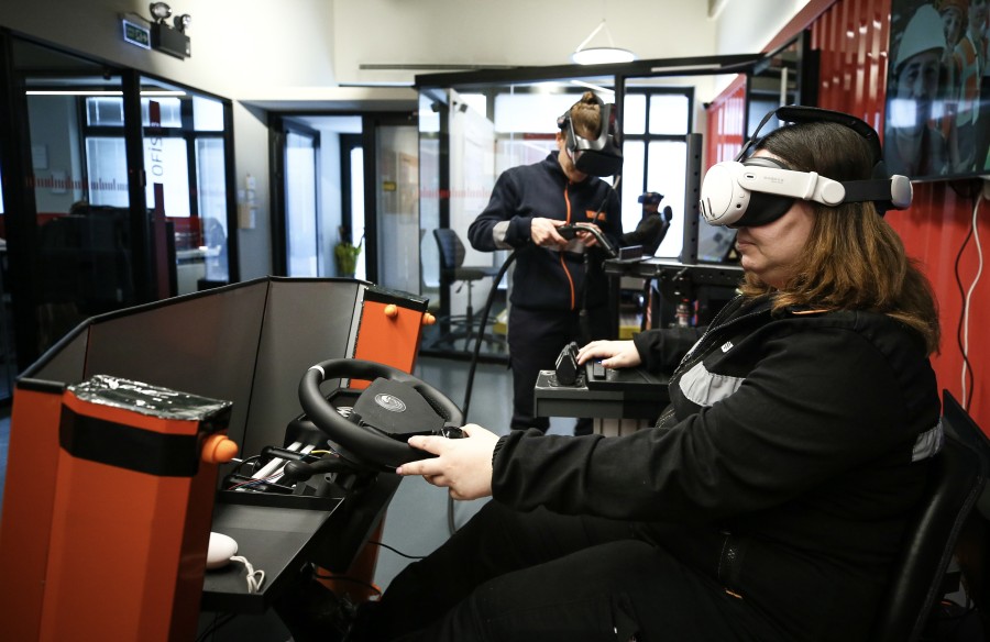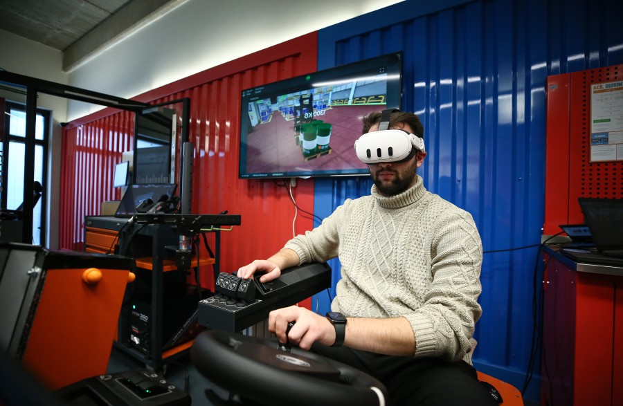 Yerden kumandalı tavan vinci, kabin taban vinci, kaynak, reach truck ve forklift operatörlüğü eğitimleri, gerçek saha koşullarını modelleyen senaryolarla, sanal gerçeklik ortamında yürütülüyor.