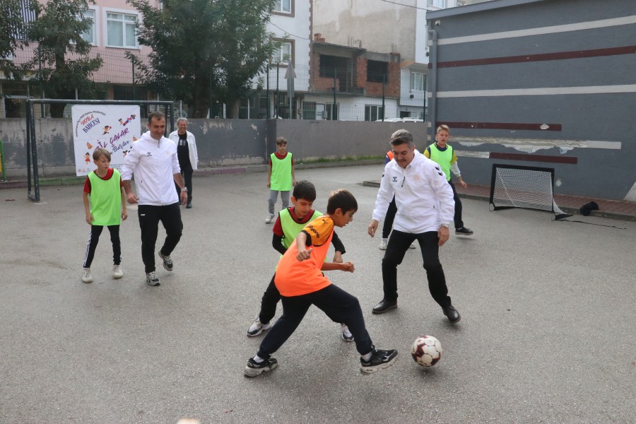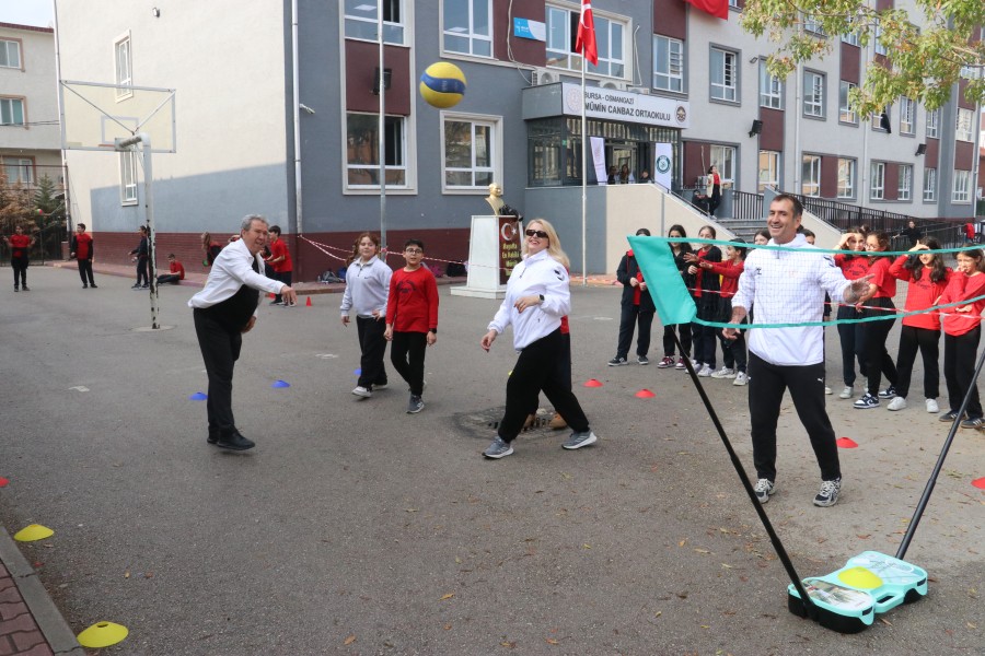 Etkinliğe katılan Osmangazi İlçe Milli Eğitim Müdürü Metin Sezer ile okulu yaptıran hayırsever iş insanı Mümin Canbaz da öğrencilerle futbol ve voleybol oynadı.