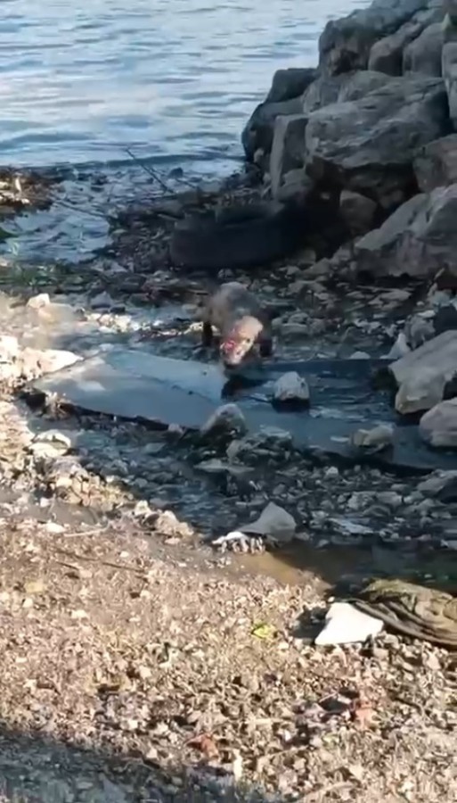 Balıkçılar tarafından yakalanan balıklardan aşırıp yemeye başlayınca su samuru olduğu anlaşıldı.