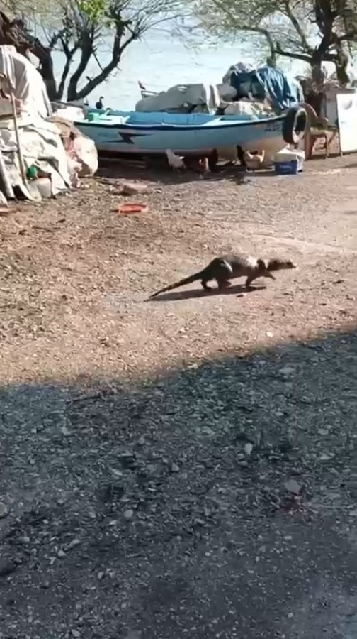 Tavukları peşine takan su samuru mahallede kısa bir tur attı. Bu sırada yaralı samuru farkeden çocuklar onu önce fare sandı.