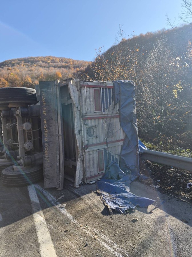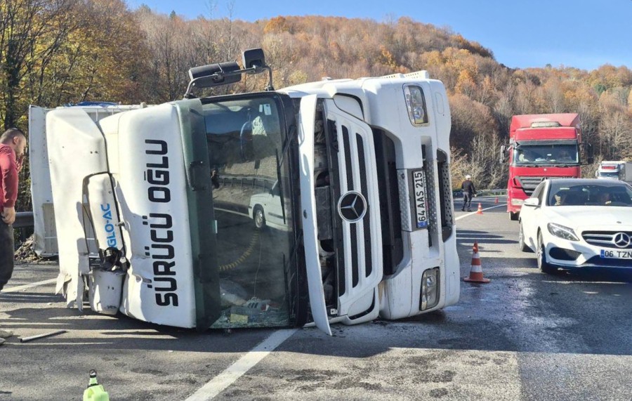 İnegöl'den Bozüyük istikametine seyir halinde olan İbrahim K.(25) yönetimindeki 64 AAS 215 plakalı geri dönüşüm malzemesi yüklü tır, sürücüsünün kontrolünden çıkarak devrildi.