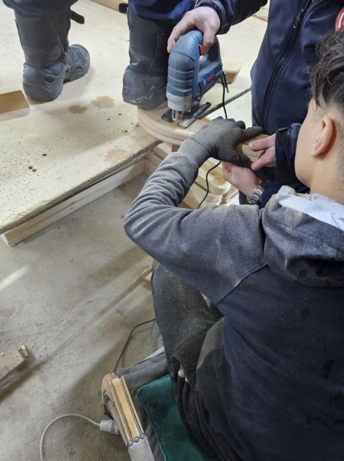 Çivi çakma işlemi sırasında ahşaptan çıkan çivi genç işçinin sol eline saplandı. Eli ahşapa çivi ile çakılan genç yardım istedi.