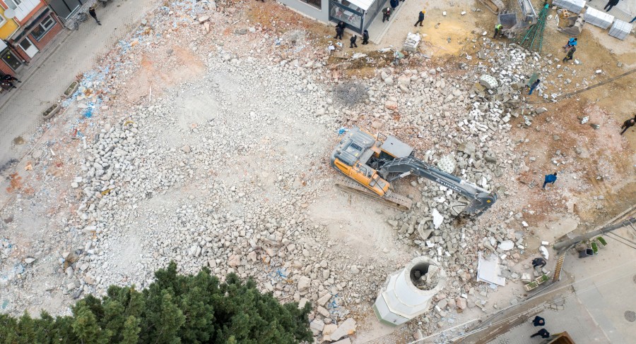 Yerleşim yerleri ile iç içe olan dev minare büyük bir ustalık ile hiç bir eve zarar vermeden yıkıldı. O anlar drone ile havadan da görüntülendi.